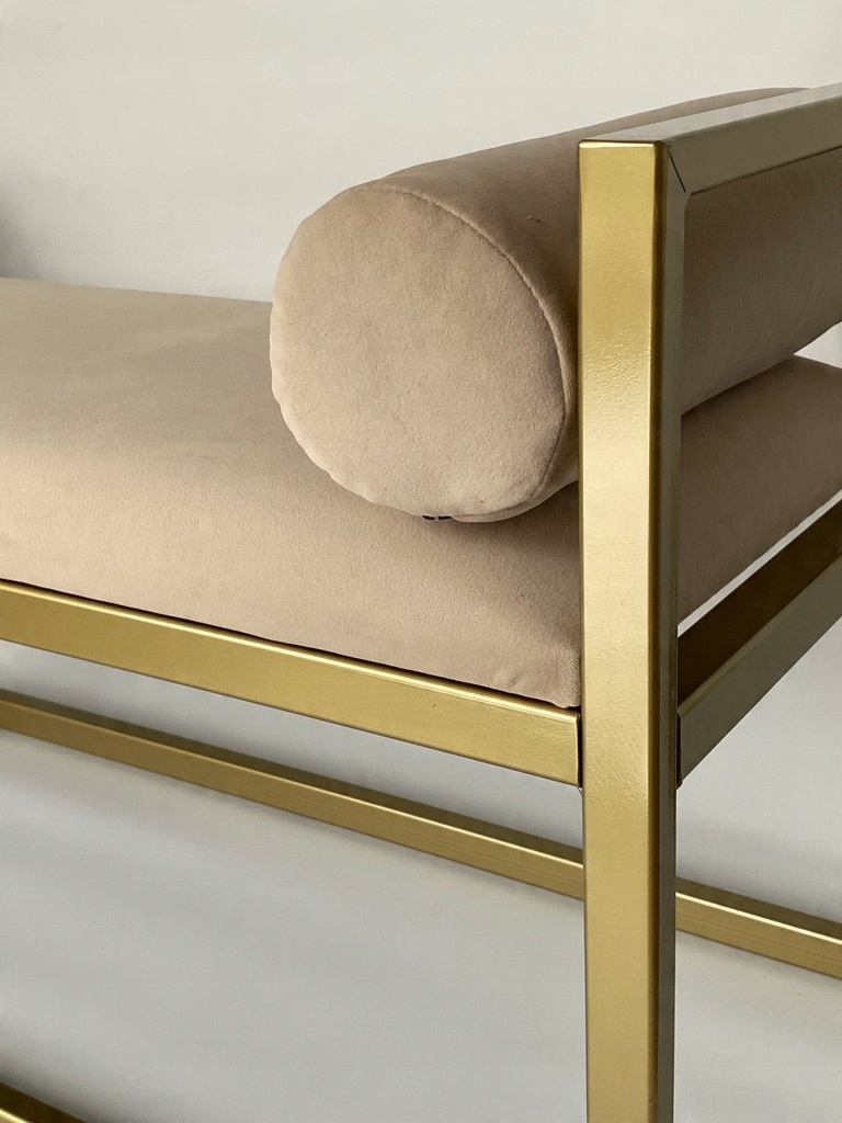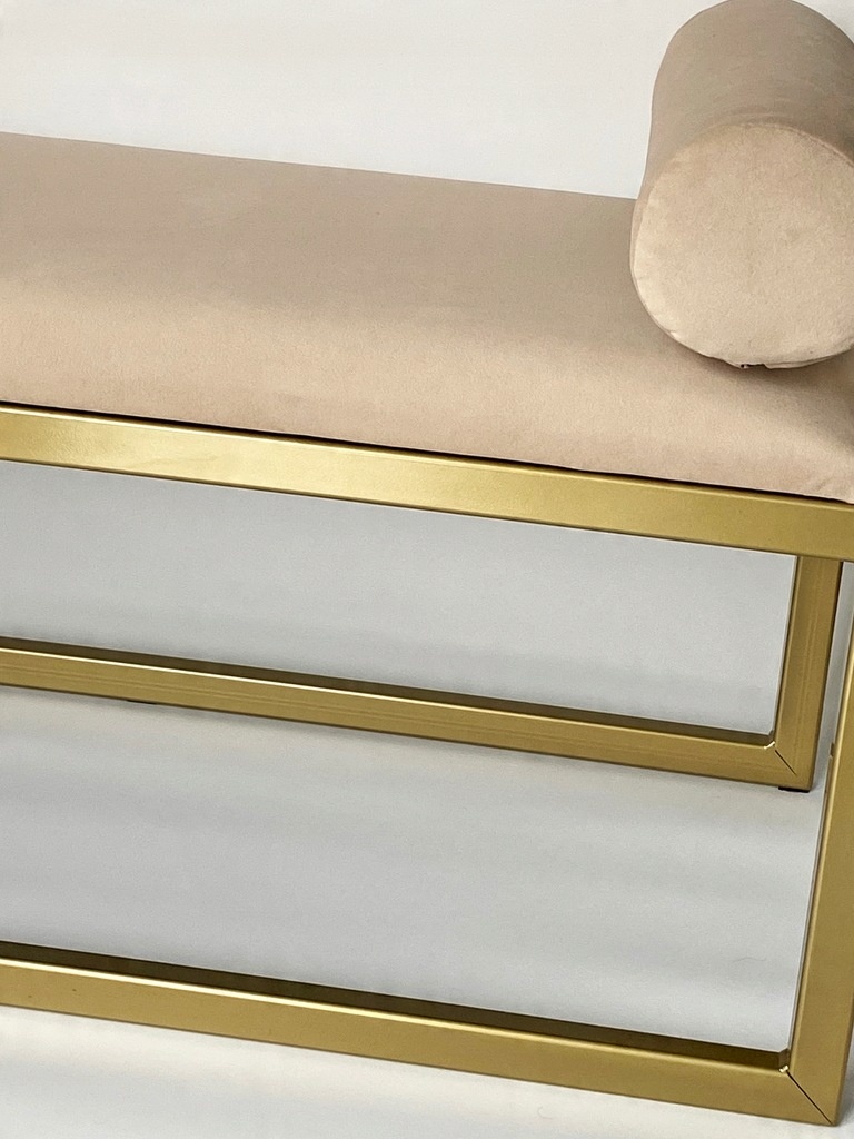 Ta nowoczesna ławka tapicerowana w odcieniu eleganckiego beżu pięknie wkomponuje się w różne style wnętrz – od klasycznych po minimalistyczne. Może pełnić funkcję siedziska, dekoracji lub dodatkowego miejsca do przechowywania pod spodem np. koszy czy pudełek.