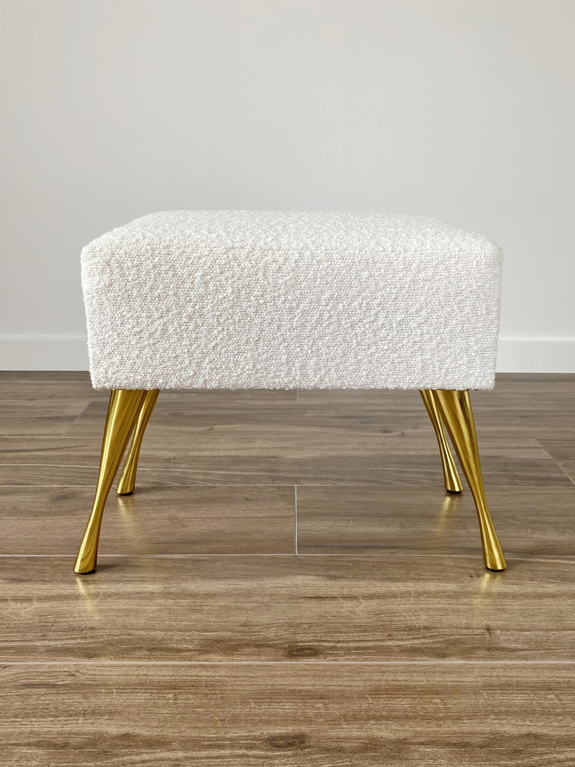 Pufa BOUCLE tapicerowana – złote nogi ✨💛