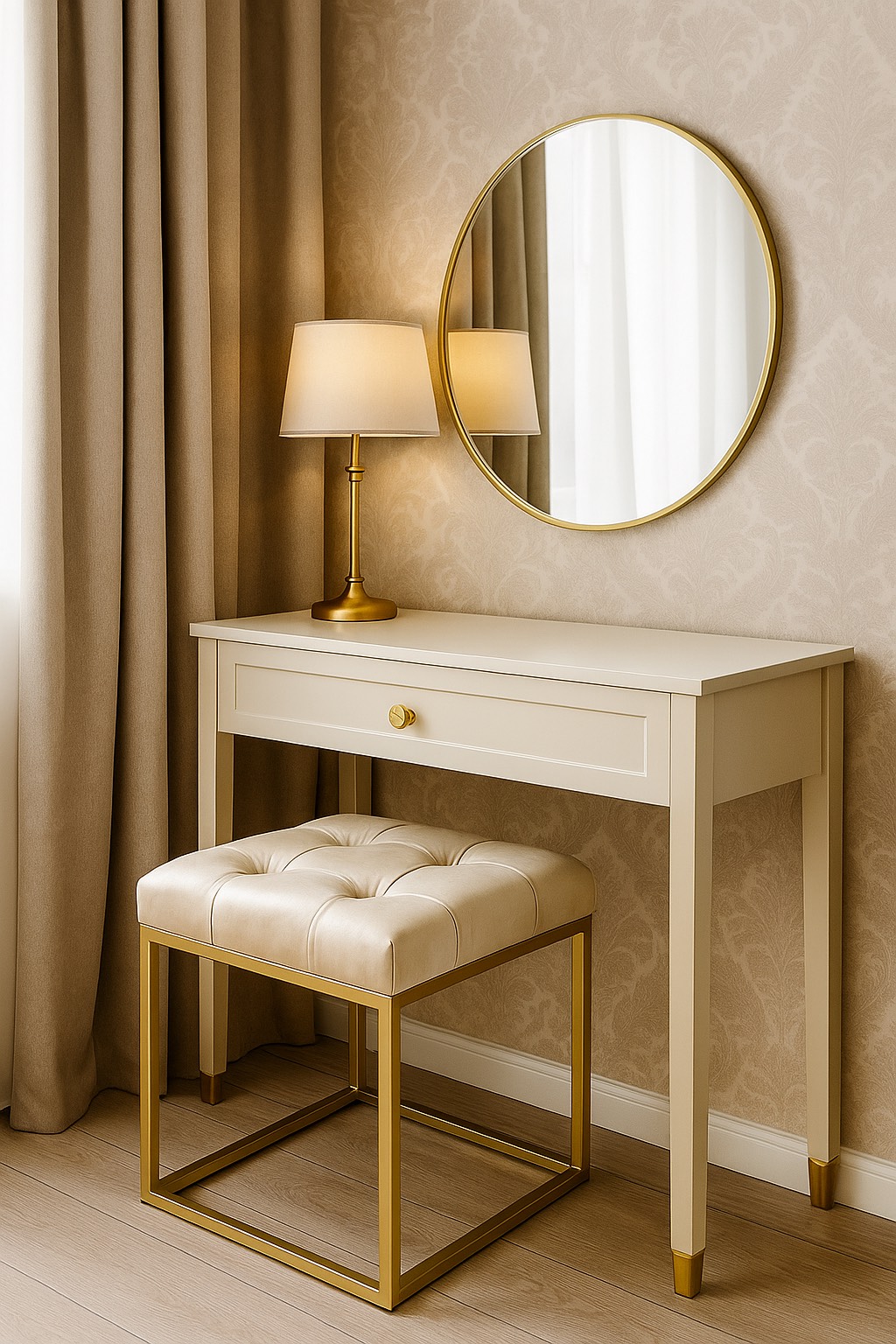 ✅ Stabilna konstrukcja – złoty stelaż wykonany z metalu, malowany proszkowo.