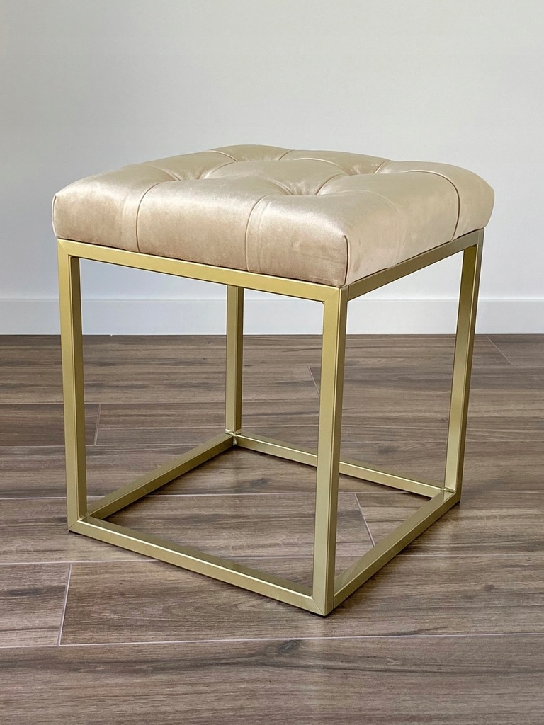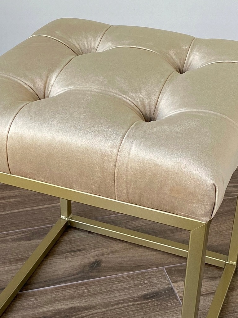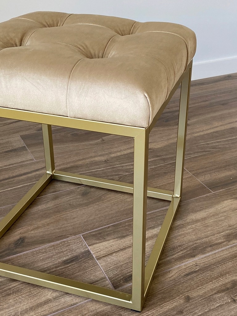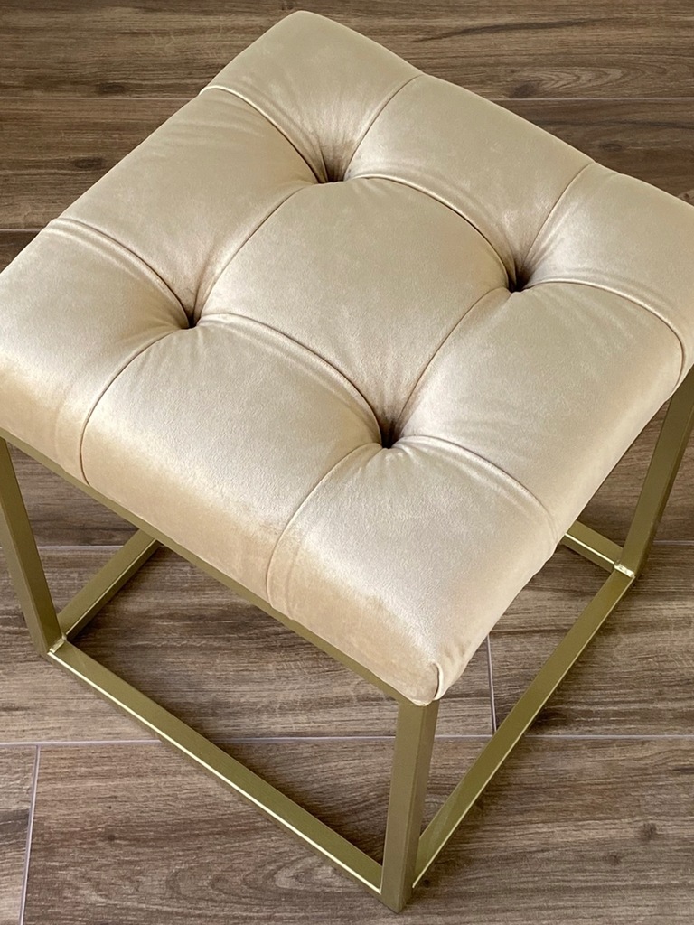 Szukasz wyjątkowego dodatku do swojego wnętrza? Nasza pufa tapicerowana na złotym metalowym stelażu to połączenie stylu, komfortu i solidnego wykonania. Designerska PUFA w całości wyprodukowana w Polsce. Idealnie sprawdzi się w salonie, przedpokoju czy sypialni.