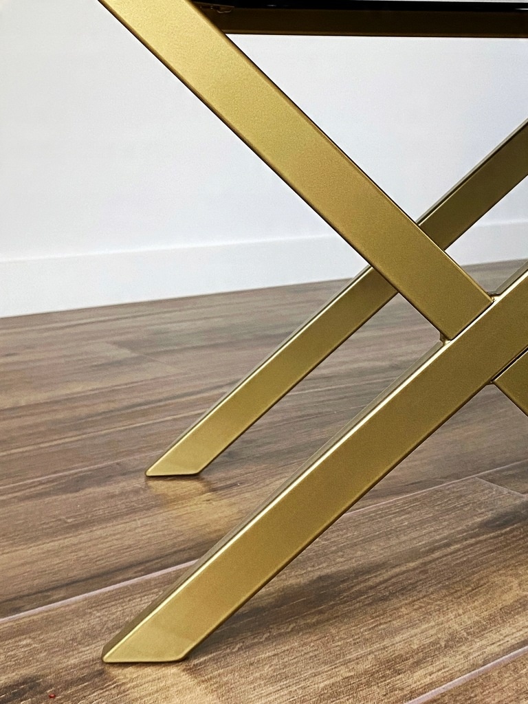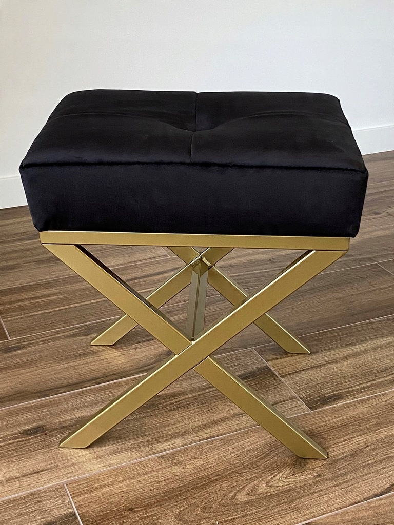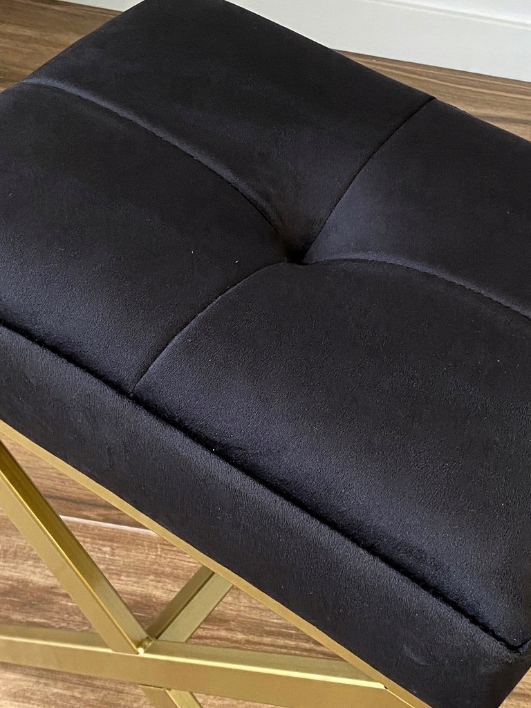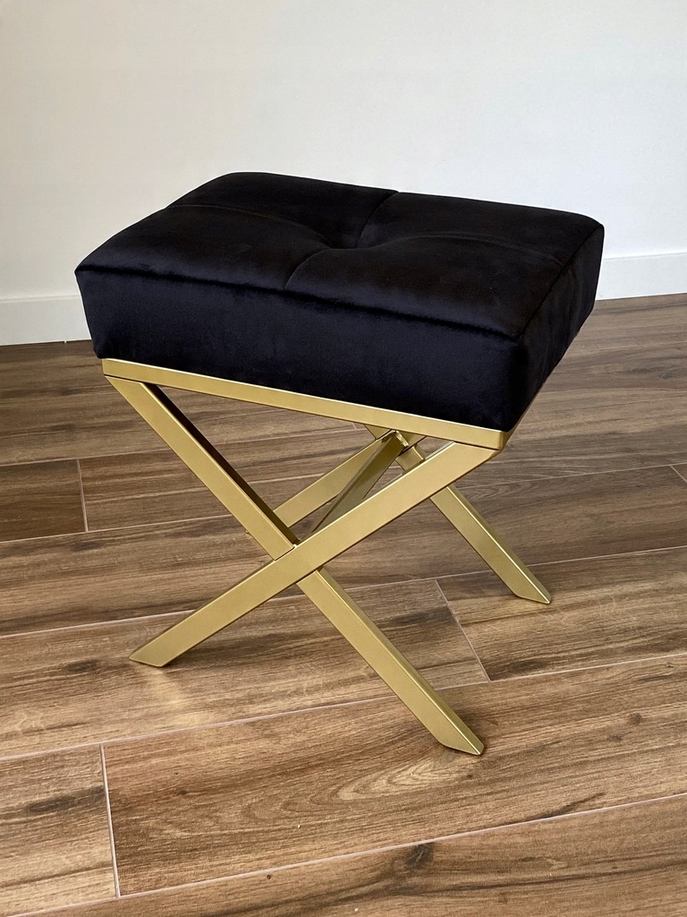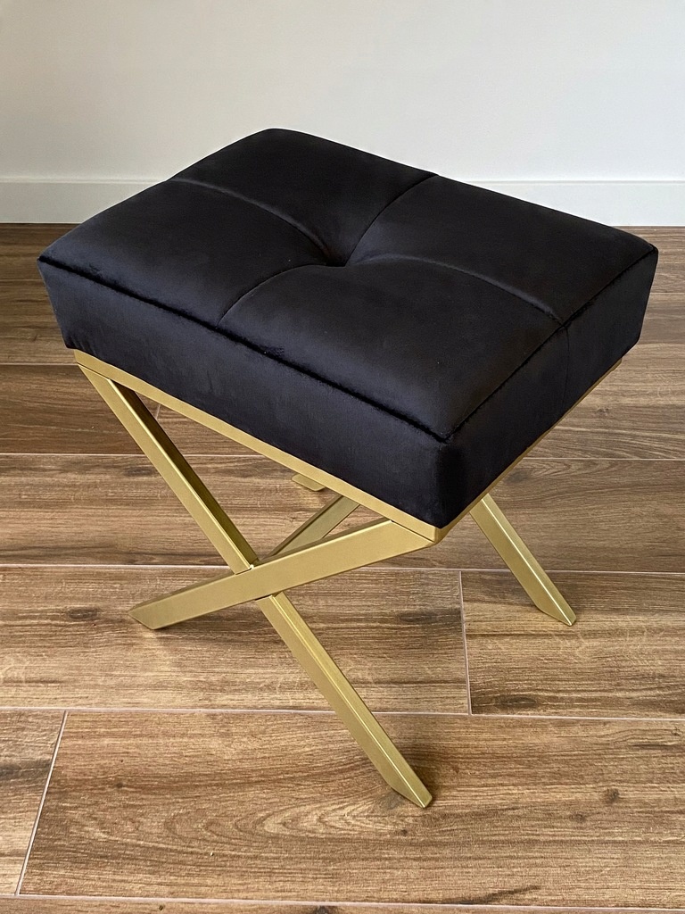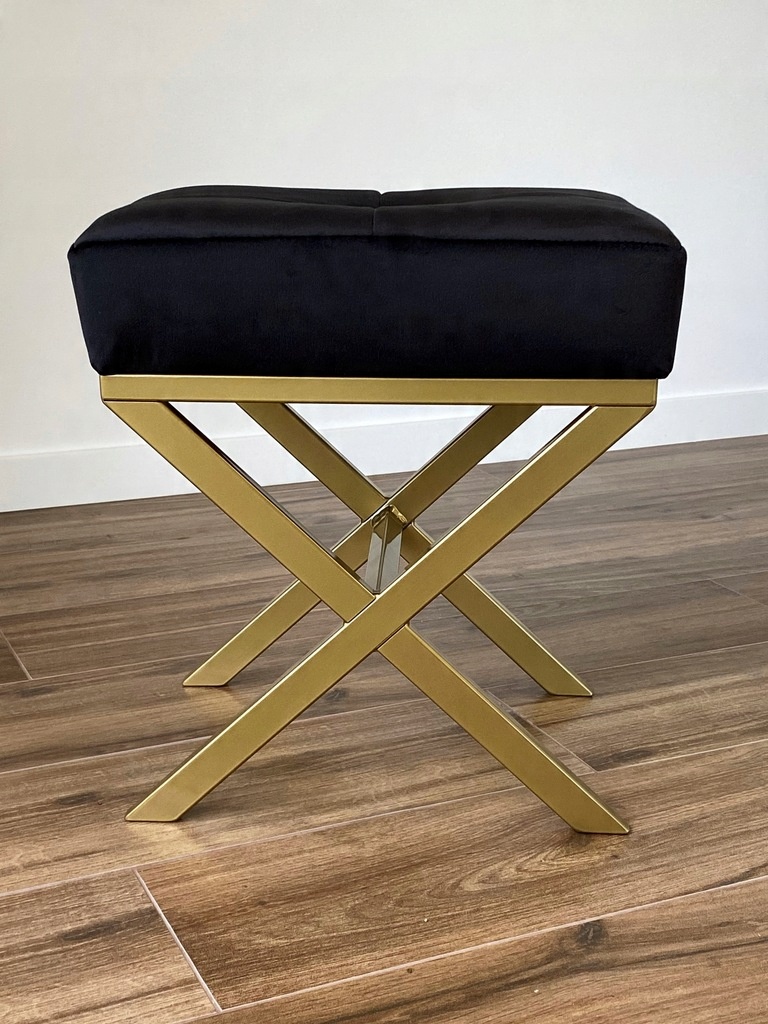 Pufa „X” czarna pikowana welurowa na złotym stelażu
